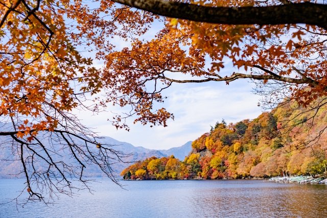 早朝の中禅寺湖周辺は人通りが少なく、湖面と山々の景色をゆっくり味わえます。