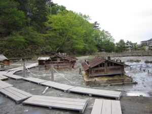 館内の温泉では、散策後の体をゆっくりと温めることができます。